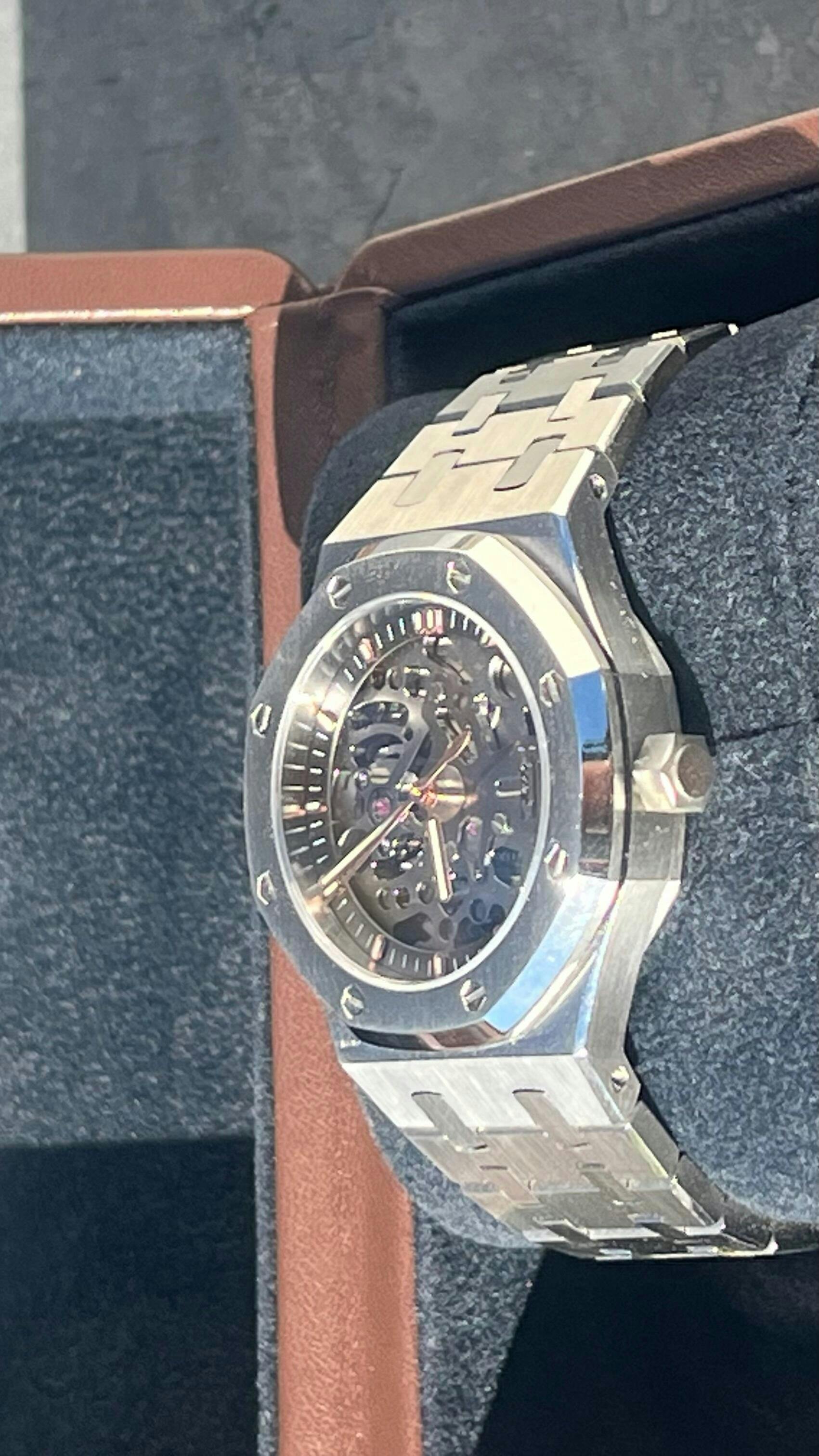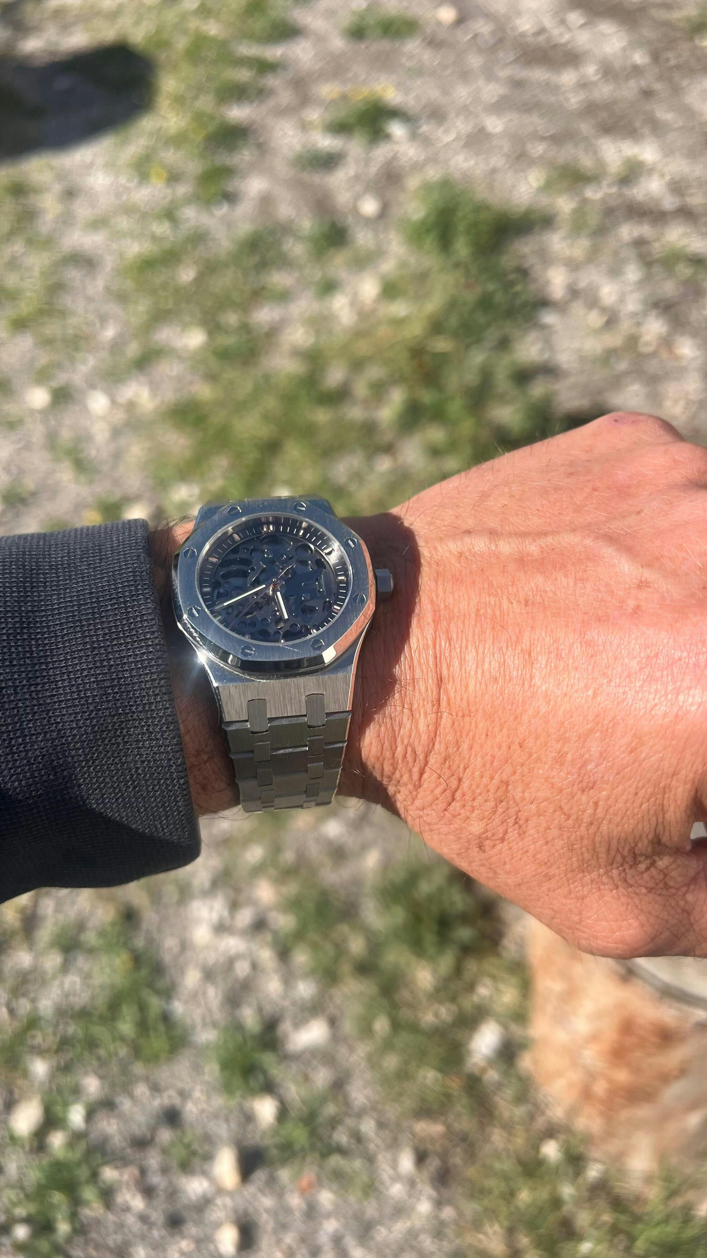 We recommend a 28.5/29mm dial for our 37mm Royal Oak Case. The typical 31.8mm mod dials that many Royal Oak Mod Cases use are too big.